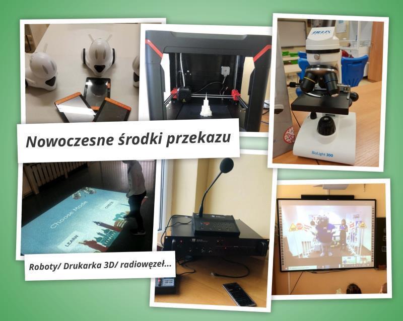 - zajęcia prowadzone z wykorzystaniem technologii informacyjno - komunikacyjnych (komputer, projektor, tablice interaktywne, tablety, roboty, drukarka 3D i Internet w każdej klasie),